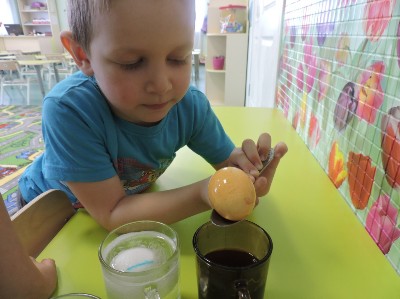 В итоге в растворе с лимонной кислотой часть яйца, которая оставалась без пасты повредилась, а с пастой осталось без изменений, в растворе с чаем яйцо изменило свой цвет на более темный. Дети сделали вывод, что нужно постоянно ухаживать за зубами.