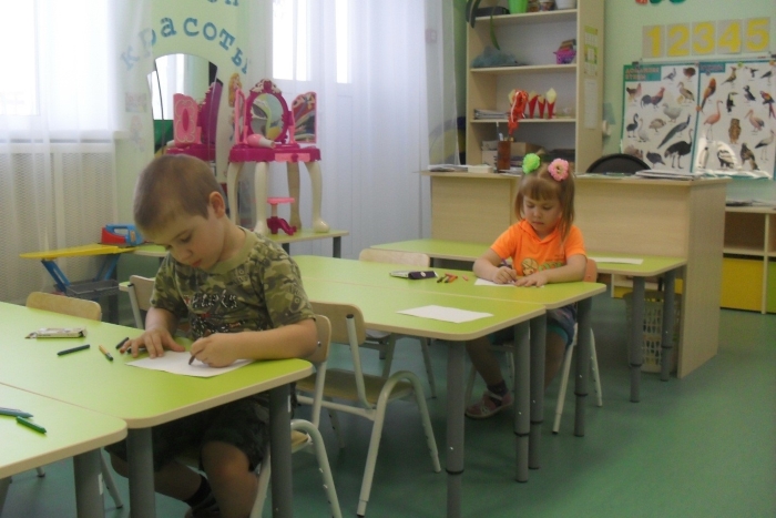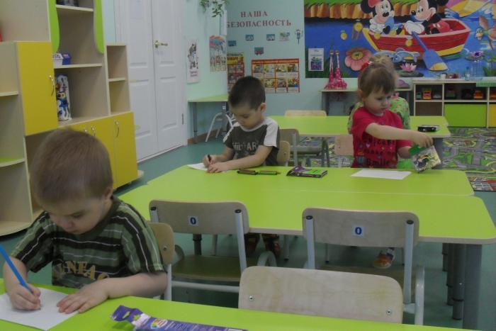 Один из моментов занятия по рисованию. Дети с увлечением заняты творческой работой. |