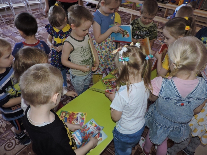 Работая в рамках проекта « Потешки-лучшие друзья», мы пригласили в группу гостей из библиотеки. Ребята с удовольствием рассматривали выставку книг. |